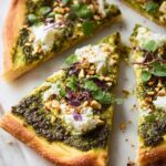 This Pistachio Pesto Pizza recipe offers a unique twist on traditional pizza by combining a homemade pistachio and basil pesto with fresh ricotta, mozzarella, and vibrant spring vegetables like asparagus and peas. The dough is made from scratch and allowed to rise, resulting in a crispy yet chewy crust. Finished with lemon zest, Parmesan, and peppery arugula or microgreens, this pizza is a flavorful, bright, and satisfying meal perfect for a gourmet homemade dinner.
