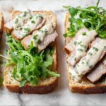 - Assemble Sandwiches: Spread whole-grain mustard over the toasted baguette slices, layer with baby arugula, then add the sliced pork strips, and finally drizzle with the prepared basil-lemon aioli.