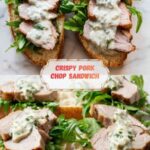 Spread the whole-grain mustard on the toasted baguette slices, followed by a generous handful of peppery baby arugula. Layer on the sliced pork chop strips, and finish with a drizzle of the basil lemon aioli. This layering ensures every bite is balanced and bursting with flavor.