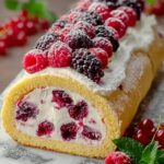 This Raspberry Cream Roll Cake is a light and elegant dessert featuring a delicate sponge cake rolled with a luscious mascarpone cream filling and fresh raspberries. The cake is baked in a jelly roll pan, then filled and rolled to create perfect slices bursting with creamy and fruity flavors, ideal for special occasions or a delightful afternoon treat.
