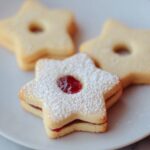 Once the cookies have cooled to room temperature, spread a thin, even layer of raspberry preserves on the flat side of the solid cookies. Gently press the cookies with holes on top to create delightful little sandwiches. Finish these beauties with a dusting of powdered sugar for a sweet, snowy appearance that will have everyone reaching for seconds.