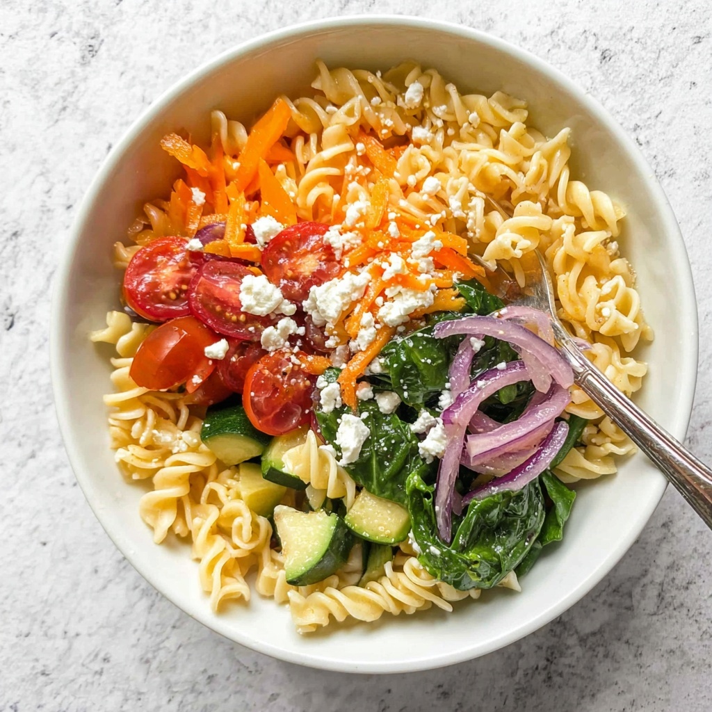 Serve this pasta in individual bowls topped with a few whole cherry tomatoes and crumbled feta for a rustic, inviting look. For a casual gathering, spread it on a large platter and garnish with colorful fresh herbs and lemon wedges—perfect for sharing and conversation.