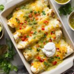 Salsa Verde Chicken Enchiladas are a flavorful Mexican-inspired dish featuring tender shredded chicken blended with tangy sour cream and zesty salsa verde, wrapped in soft tortillas, topped with melted Monterey Jack cheese, and baked to perfection. This recipe is perfect for a comforting family meal or a casual dinner with friends.