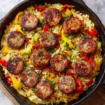 This Sausage and Rice Skillet is a hearty, one-pan dinner featuring smoky sausage, tender rice, and vibrant vegetables. Perfect for a quick and satisfying meal, it combines rich flavors with simple ingredients cooked entirely on the stovetop for an easy cleanup.