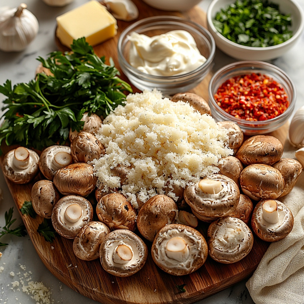 Small to medium white button or cremini mushrooms are ideal because their caps hold the filling nicely. Larger mushrooms can work but may need more filling and longer baking time.