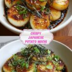 Savory Pan-Fried Japanese Potato Mochi is a deliciously crispy snack or side dish made from tender mashed potatoes blended with mochiko (sweet rice flour), green onions, and soy sauce. These small, golden discs are pan-fried to perfection, delivering a delightful combination of a crispy exterior and a chewy, soft interior. Perfect as an appetizer or accompaniment to your favorite Japanese-inspired meal.