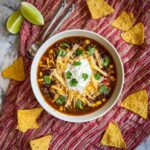 - Adjust Seasoning and Serve: Before serving, taste the soup and add salt as needed. Ladle the hot soup into bowls and top each serving with shredded Mexican cheese, a dollop of sour cream, fresh cilantro, a squeeze of lime or lime wedge, and crunchy tortilla strips or chips.
