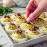 This Spicy Deviled Eggs recipe offers a classic appetizer with a fiery twist, combining creamy mayonnaise, tangy Dijon mustard, and hot sauce for a flavorful filling. Perfect for gatherings or as a tasty snack, these deviled eggs are garnished with smoked paprika and optional fresh jalapeños or herbs for a vibrant presentation.