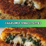 Delicious and healthy Spinach and Cheese Stuffed Cauliflower Patties, featuring tender cauliflower and spinach blended with creamy cheeses and spices, pan-fried to a golden crispy finish. These patties are perfect as a savory snack or a nutritious appetizer, combining fresh vegetables with rich dairy flavors for a satisfying bite.