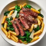 A rich and hearty Italian-American steak pasta featuring tender sirloin steak strips tossed in a creamy garlic Parmesan sauce with fettuccine or penne pasta. Perfect for a comforting dinner that’s packed with flavor and protein.