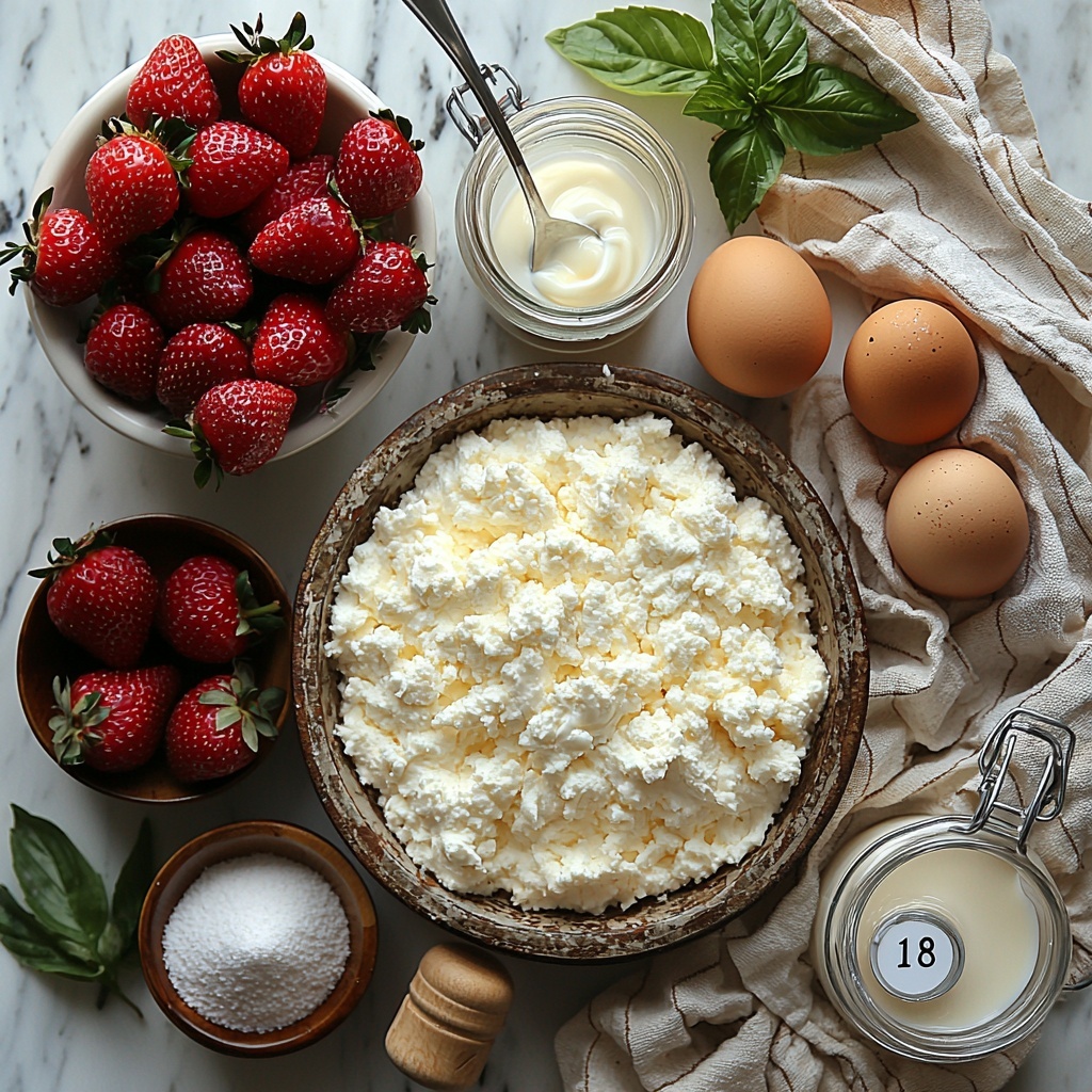 - Sliced strawberries: The star of the show on top, providing bright color and fresh juiciness.