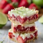 Pair these bars with a light fruit salad or a crisp green tea to refresh the palate. The strawberries and lime in the bars naturally complement fresh, vibrant sides that keep the dessert feeling bright and not overly sweet.
