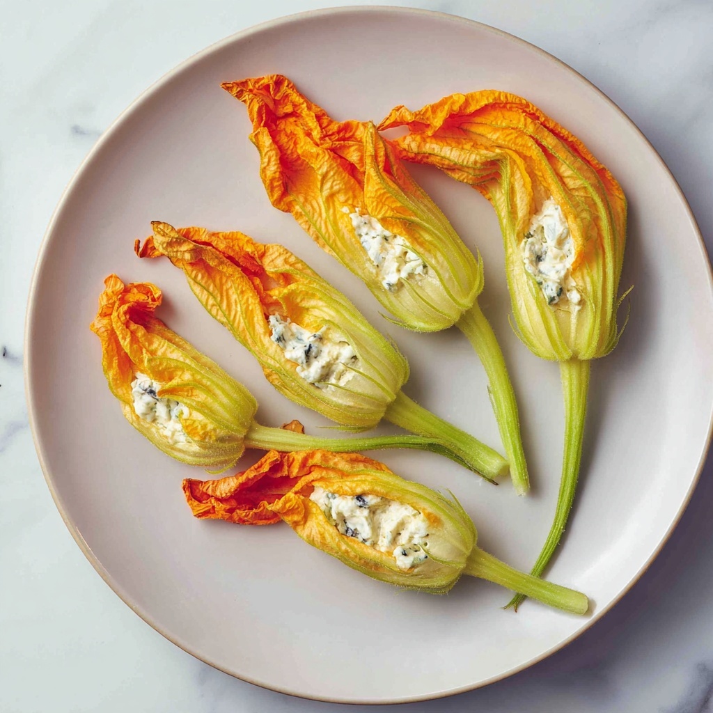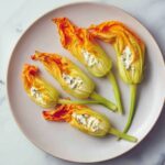 These stuffed blossoms shine as a starter or a light bite with a crisp green salad dressed in lemon vinaigrette, balancing richness and freshness. For a heartier option, pair them with crusty bread or a chilled glass of dry white wine to keep the flavors elegantly simple but satisfying.