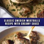 Classic Swedish Meatballs recipe featuring a savory blend of ground beef and pork, seasoned with warm spices and herbs, pan-fried to golden perfection, and served in a rich and creamy sour cream gravy. Perfect for a comforting meal that brings traditional Scandinavian flavors to your table.