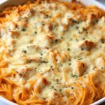 This Taco Spaghetti Casserole is a flavorful fusion dish combining the comfort of creamy pasta with zesty Mexican-inspired flavors. Featuring tender chicken, a blend of Mexican cheeses, and a creamy sauce enriched with salsa and taco seasoning, this casserole is perfect for a family-friendly dinner that’s easy to prepare yet full of bold taste.