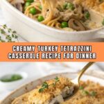 Allow the Turkey Tetrazzini casserole to cool for a few minutes before serving. This step helps the sauce thicken slightly and makes it easier to portion out that irresistible cheesy, crunchy topping in every serving.