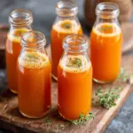 Transfer the bright golden liquid into small glass bottles or shot glasses. Chill them in the refrigerator for a refreshing treat later, or enjoy right away. Remember to shake well before each shot to keep all the ingredients well mixed.