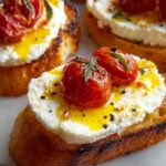 This Whipped Feta Bruschetta is a delightful appetizer featuring a creamy, tangy whipped feta spread topped with a vibrant, fresh cherry tomato mixture. Perfectly toasted baguette slices add a satisfying crunch, making it an ideal starter for gatherings or a light snack.